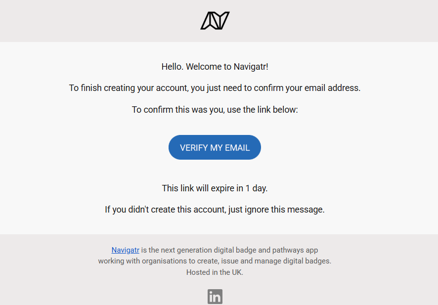 - Check your inbox (or spam folder) for a verification email from Navigatr.