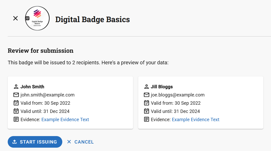 - Inform recipients they will receive an email with instructions to claim their badge and remind them to check their spam folder if they don’t see it.